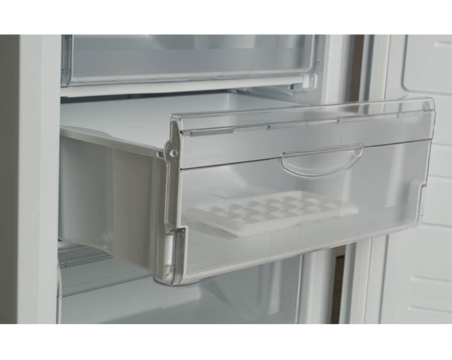 отдельностоящий, механическое управление, класс A, полезный объём: 340 л (201 + 139 л), перенавешиваемые двери, лоток для яиц,  высота  195 см, белый