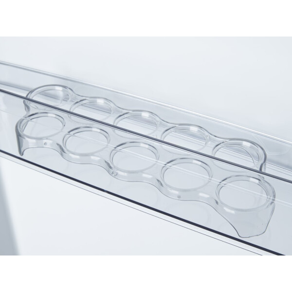 отдельностоящий, электронное кнопочное управление, класс A+, полезный объём: 341 л (182 + 159 л), перенавешиваемые двери, лоток для яиц, ящик для овощей и фруктов (Green Box с разделителем), масленка, подставка для бутылок, выдвижной подвесной контейнер (Pull Box), ограничитель для бутылок, контейнер с крышкой (для хранения рыбы и мяса),  высота  196.8 см, белый